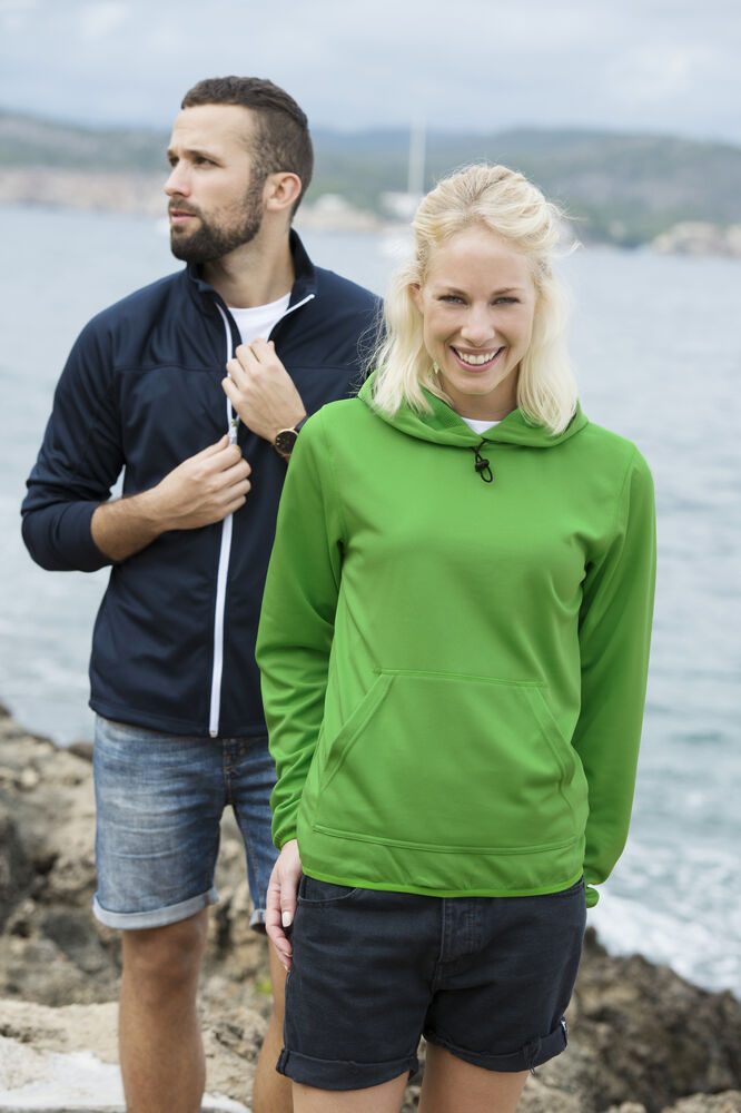 Sportieve sweater met capuchon gemaakt van functioneel polyester voor een optimaal draagcomfort. De sweater is professioneel afgewerkt met een trekkoord in de capuchon, elastiek in de boord en onderaan de mouwen en mesh-voering in de capuchon. De behandeling met softener zorgt ervoor dat de sweater zacht aanvoelt. De sweater is perfect inzetbaar in zowel werk- als sportgerelateerde doelgroepen waarbij intensieve inspanningen een alledaagse uitdaging vormen.