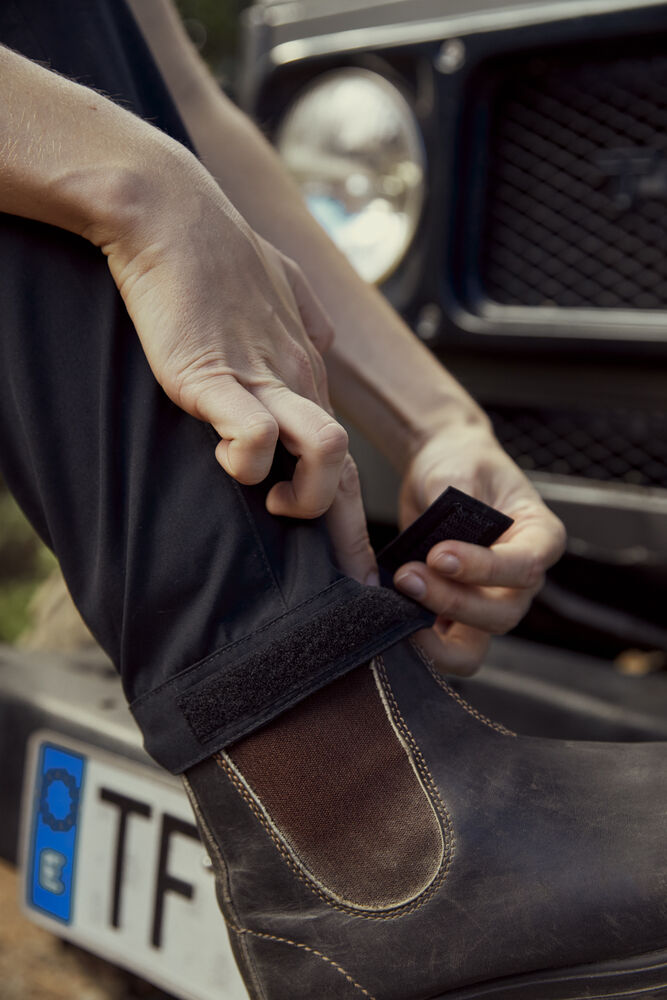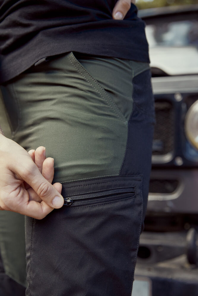 Een moderne trekking broek van een comfortabele en ventilerende 4-way stretch kwaliteit. Met delen van hoogwaardige wind- en waterafstotende stof. Afgewerkt met elastiek in de taille en een voorgevormde knie voor verbeterde mobiliteit. Twee voorzakken, twee beenzakken met rits en één achter. De onderzijde van de broekspijp is verstelbaar met elastiek en klittenband. Met ruimte voor het invoegen van kniebeschermers.