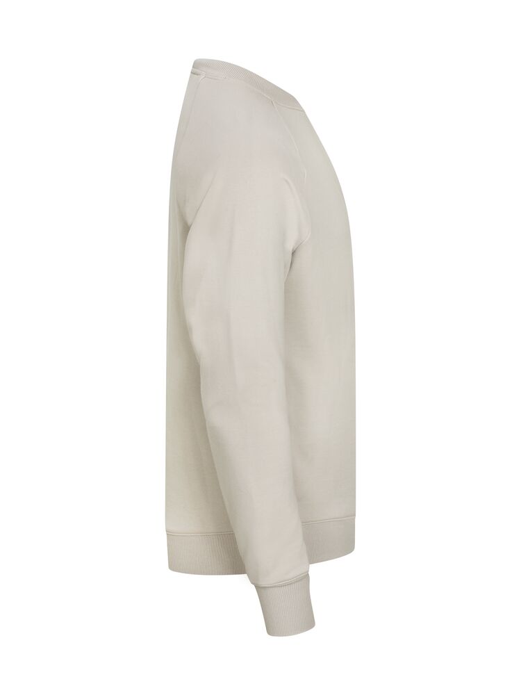 Een unisex trui met ronde hals in French terry-kwaliteit, gemaakt van een mix van katoen en gerecycled polyester. Voorzien van raglanmouwen en een elastische 2×2 rib met enkele stiksels bij de hals, de onderkant van de mouwen en de zoom. Afgewerkt met een necktape van keperstof in contrastkleur en een gemakkelijk te verwijderen label voor rebranding. De zachte, gestabiliseerde stof is ontworpen voor intensief wassen en heeft een anti-pilling afwerking.