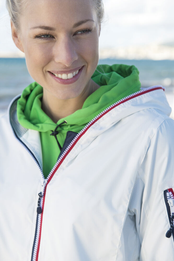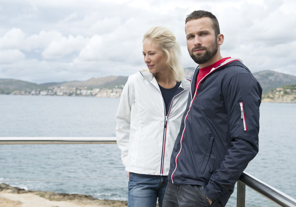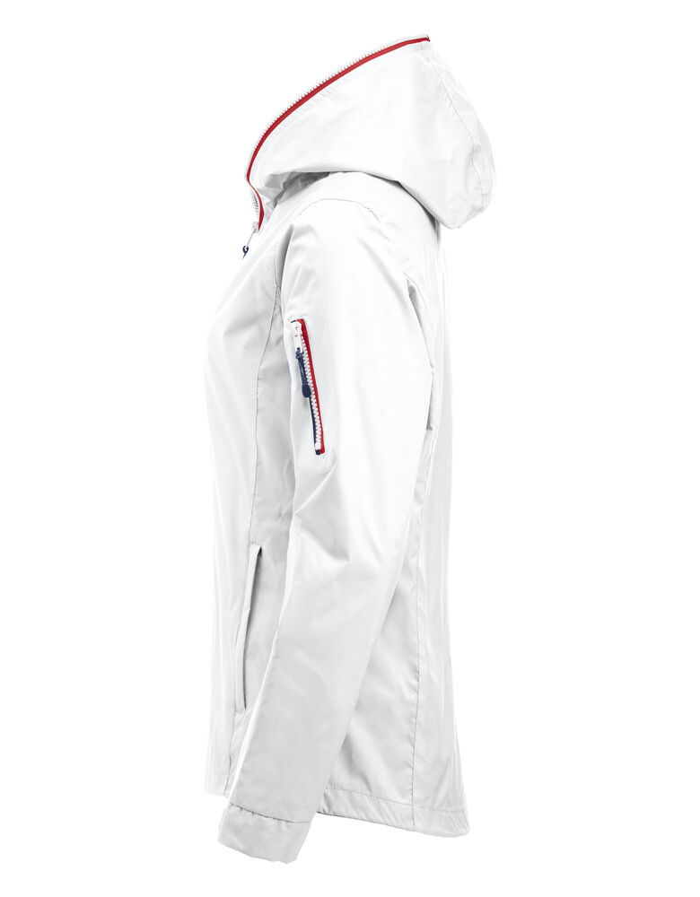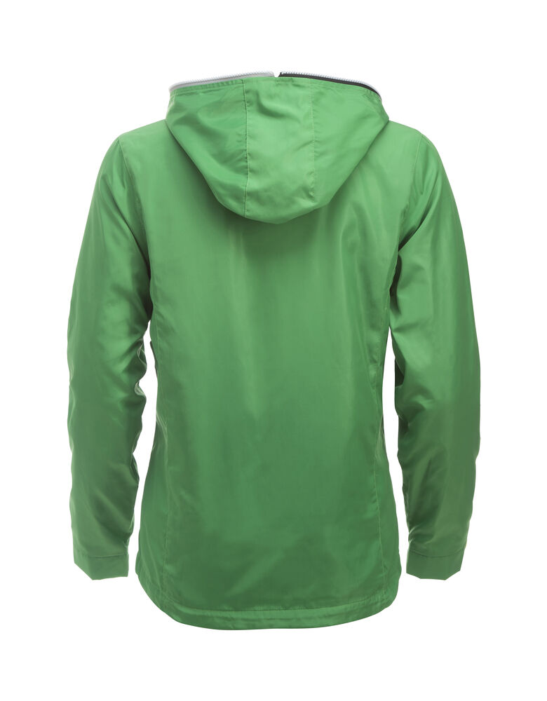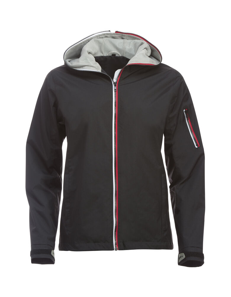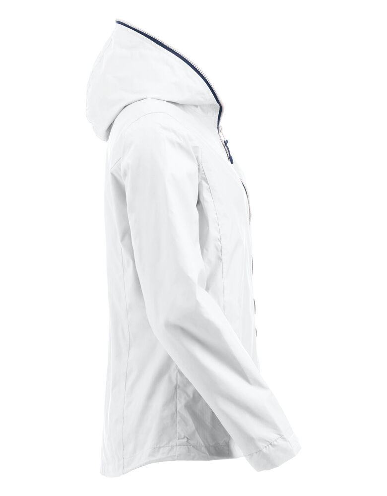 Opvallende, lichtgewicht jas met rits die tot en met de capuchon dicht kan. De jas is uitgerust met opvallende contrasterende strepen die langs de rits lopen voor een unieke, opvallende uitstraling. De jas is gemaakt van hoogwaardig ripstop polyester met PU coating ter bescherming bij regenachtig weer. De jas is gemakkelijk te veredelen dankzij de drukkersrits aan de binnenzijde.