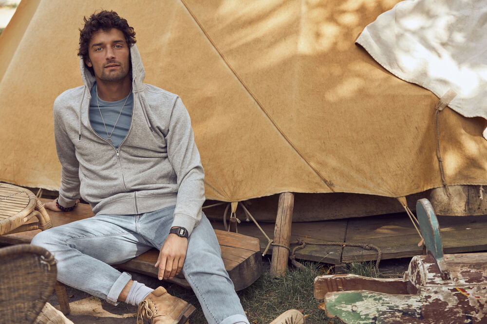 Premium kwaliteit sweater met capuchon en een moderne pasvorm. De sweater is gemaakt van biologisch katoen en gerecycled polyester in een zware French terry-kwaliteit waardoor de sweater een professionele uitstraling heeft. De sweater is hoogwaardig afgewerkt met een YKK-rits aan de voorzijde, twee zijzakken met YKK-rits, decoratieve flatlock naden, oplossing voor een koptelefoon en visgraat necktape. Het rib in de boord en onderaan de mouwen geven de sweater een comfortabele pasvorm.